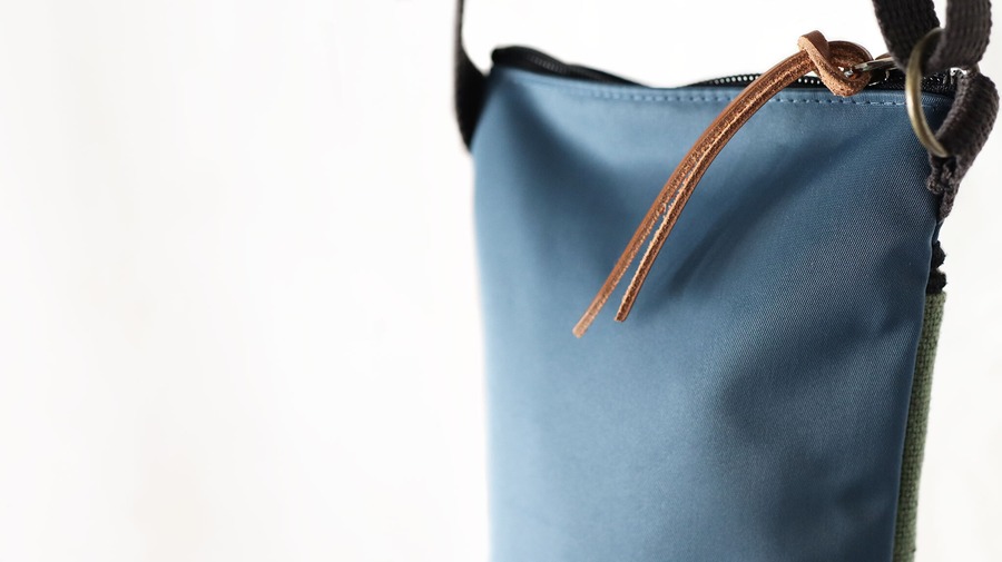 開け閉めがスムーズになり使いやすくなるジッパータブ。シンプルなサコッシュには長めの"ナイフシェイプ ジッパープーラー"を付けました。姫路レザーのヌメ革を使用しているので質感も良く、実際に使ってみても長い方が引きやすい。なにより自然素材の本革なので"ヘンプコットン"との相性も良く、使っていくうちに革も馴染みアジも出る。シンプルなバッグゆえ、ちょっとした"デザイン・エッセンス"になります。